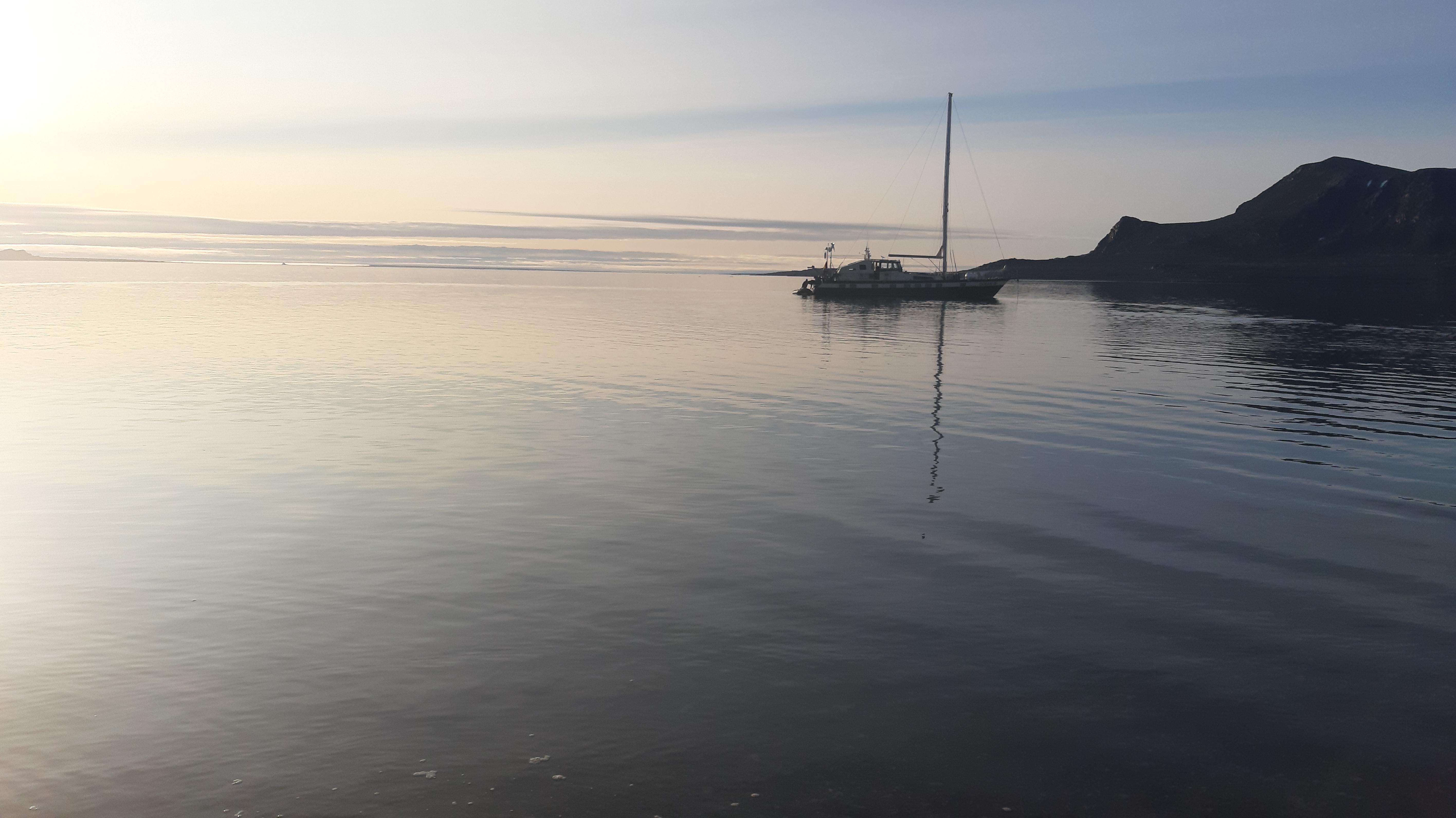 Jacht Ocean B przy północno-zachodnim wybrzeżu Nordaustlandet czekający na powrót grupy lądowej.